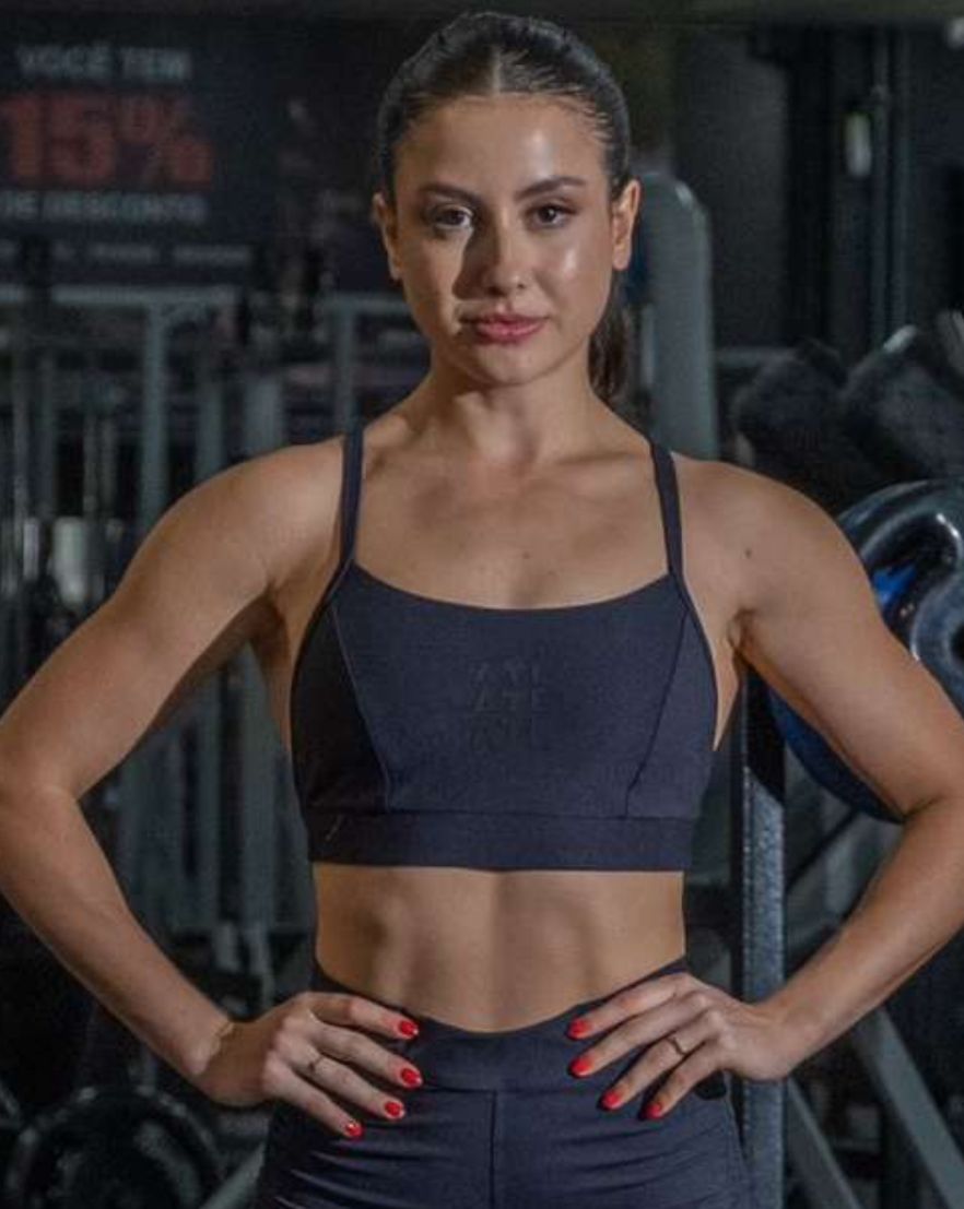 Alças retas e finas nas costas, permitindo maior liberdade de movimento para ombros e braços.